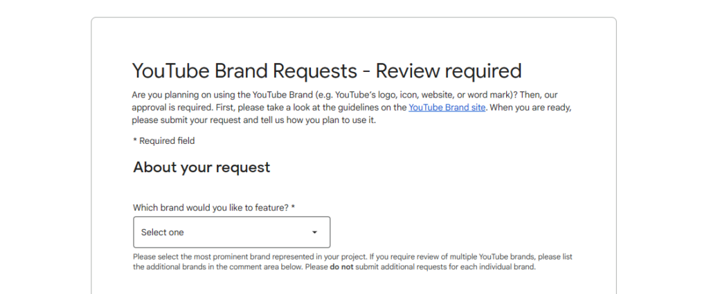 YouTube ブランドを使用および適用する際には、その都度、以下のフォームから承認をリクエストしていただく必要があります。