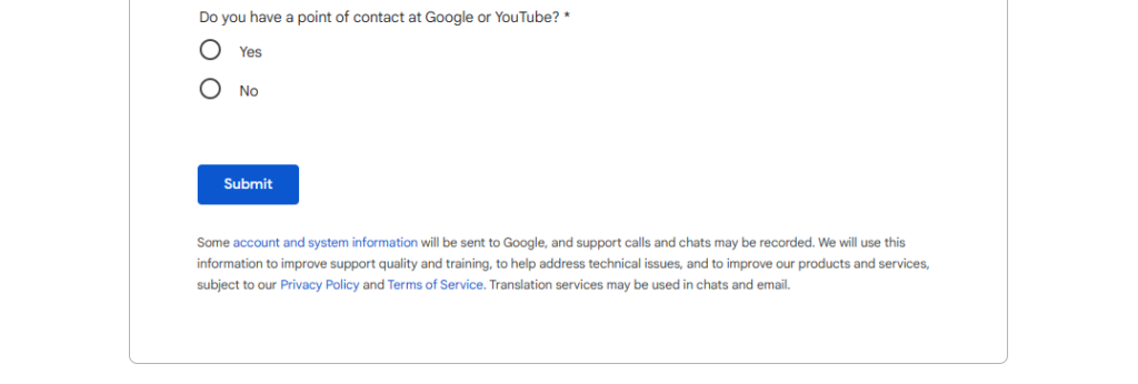 | Do you have a point of contact at Google or YouTube? * | GoogleもしくはYouTubeに担当営業はいますか? | No |